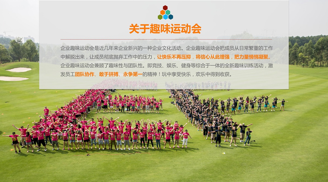 企业趣味运动会是近几年来企业新兴的一种企业文化活动。企业趣味运动会把成员从日常繁重的工作中解脱出来,让成员抛弃工作中的压力,让快乐不再压抑,将信心从此增强,把力量悄悄凝聚。企业趣味运动会兼顾了趣味性与团队性。即竞技、娱乐、健身等综合于一体的全新趣味训练活动,激发员工团队协作、敢于拼搏、敢于斗争的精神!玩中享受快乐,欢乐中得到收获。